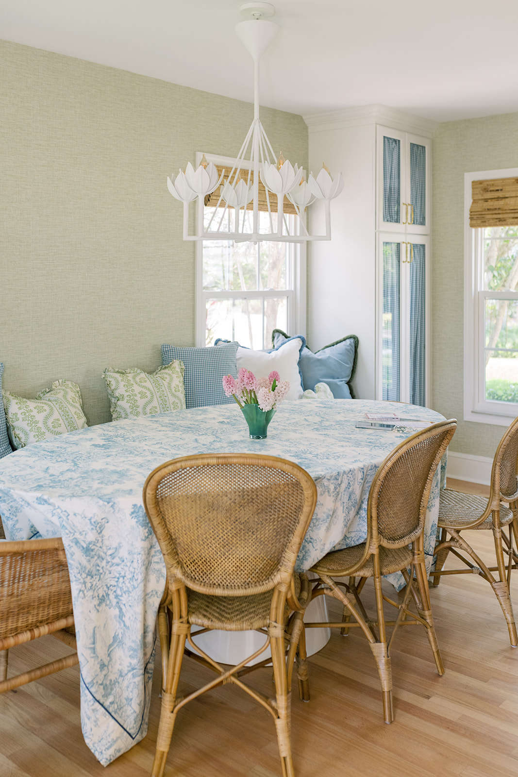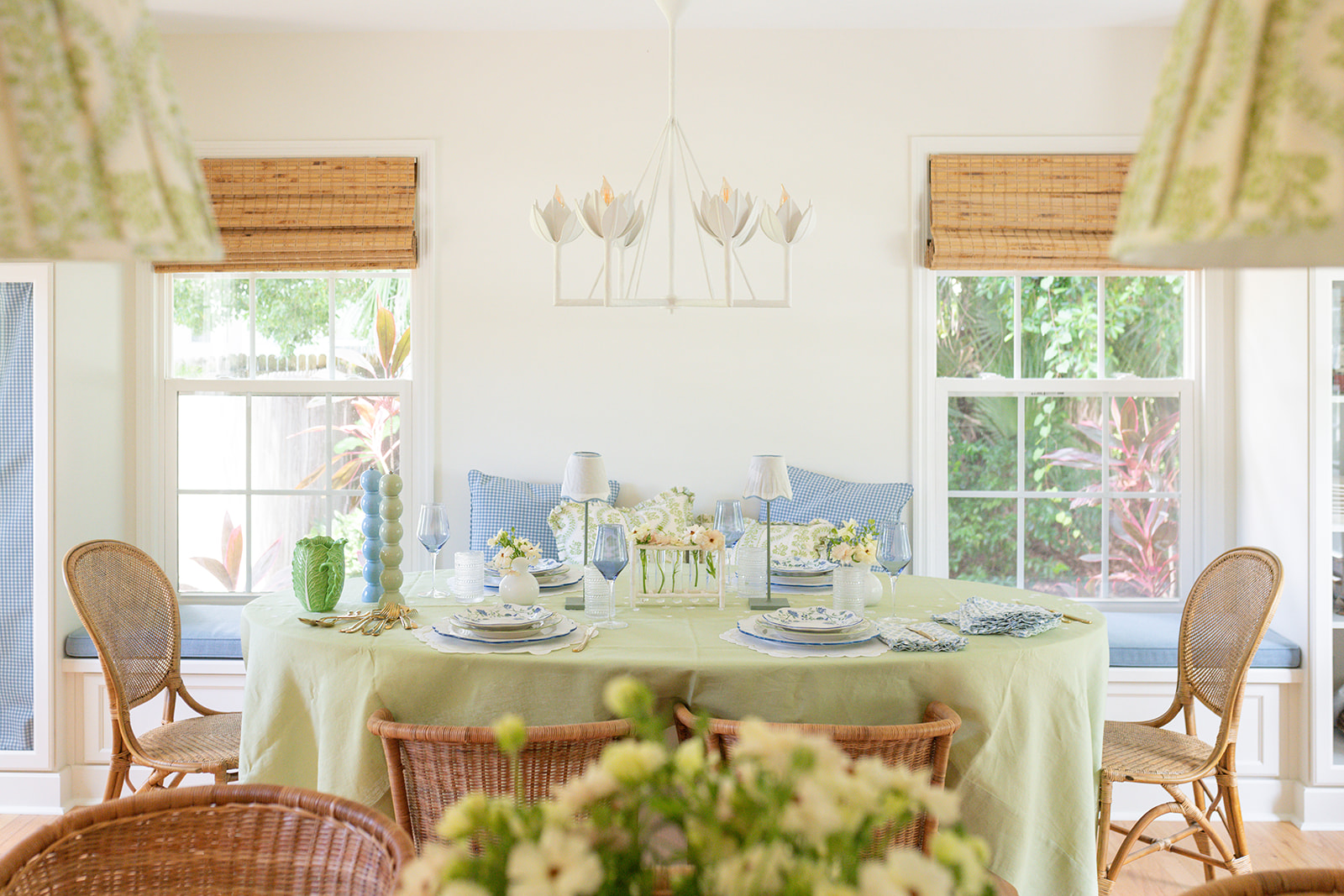 Chandelier above table: Julie Neill Alberto chandelier. I bought this in 2021, and felt it still looked great so didn’t switch anything out here!