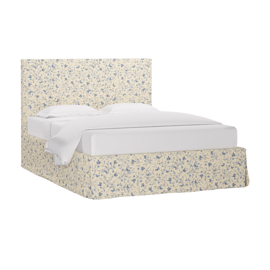 The nightstand is the porter side table from Coley Home in rattan.Â