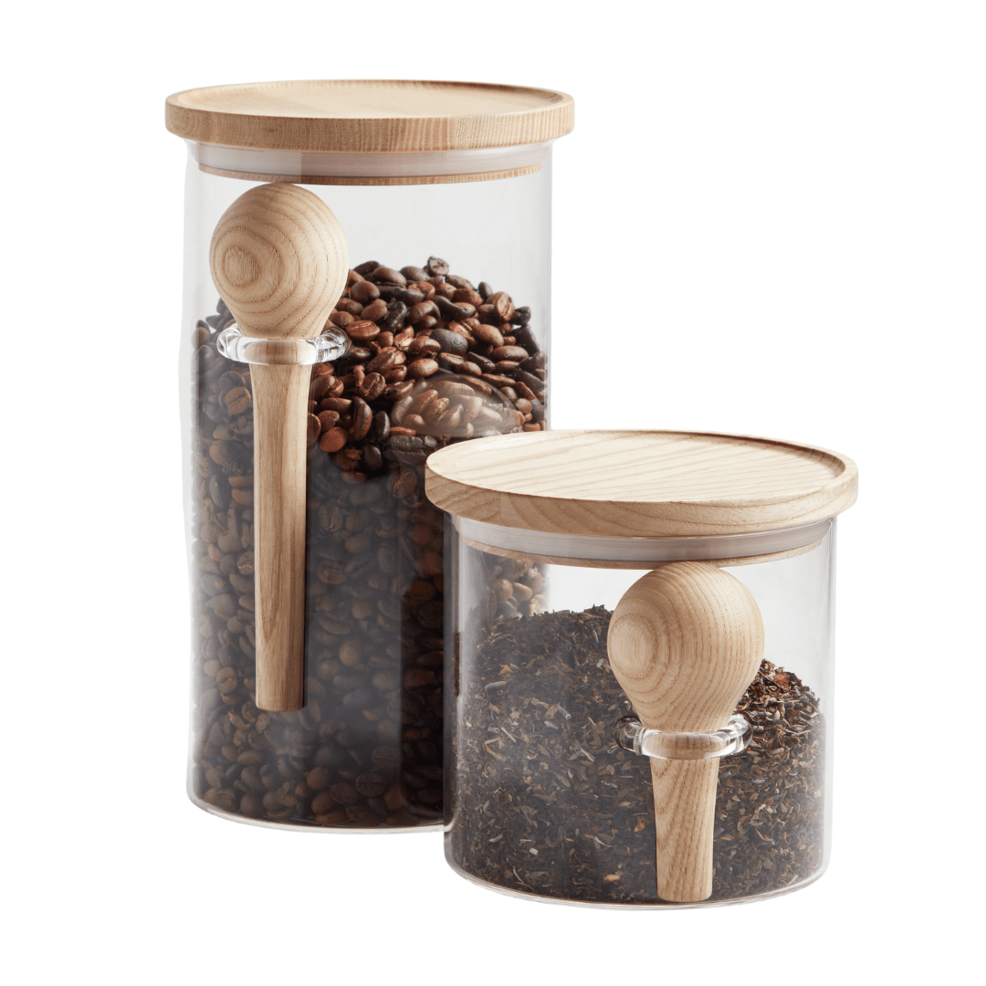 I love pretty and functional kitchen pieces, and these coffee and tea canisters check both boxes. You can stack them or display them side by side, and they come with the cutest little wooden measuring spoon.