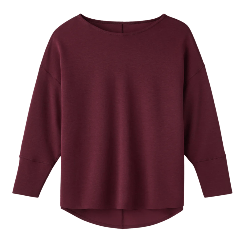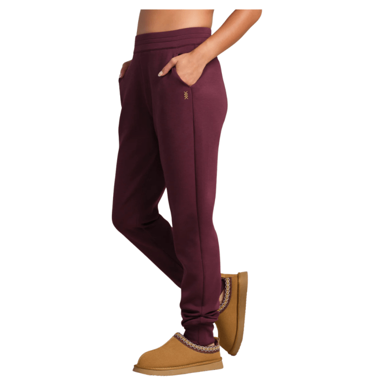 Another set I reach for often—especially in the fall—is this pretty red matching set. The pant has a tapered yet relaxed fit, and I pair it with the matching DreamGlow Pullover and a Featherweight Tee layered underneath. Lately, I’ve been wearing this look with my clogs, especially around the house.