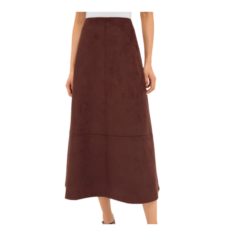 The Collegiate from Frame is another wide-leg favorite (I’m wearing these in the image above). They’re polished enough for dressing up but still super comfortable.Faux Suede Skirt