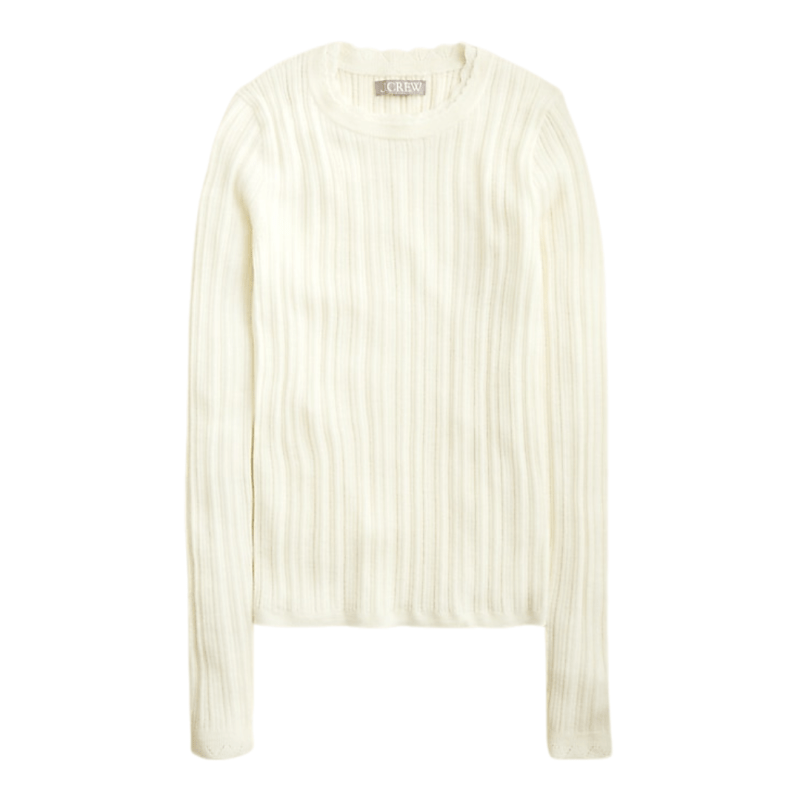 When the weather hasn’t quite made the seasonal switch, a short-sleeve cardigan is perfect. This simple style pairs beautifully with jeans for a laid-back look.Long Sleeve Pointelle Sweater Tee