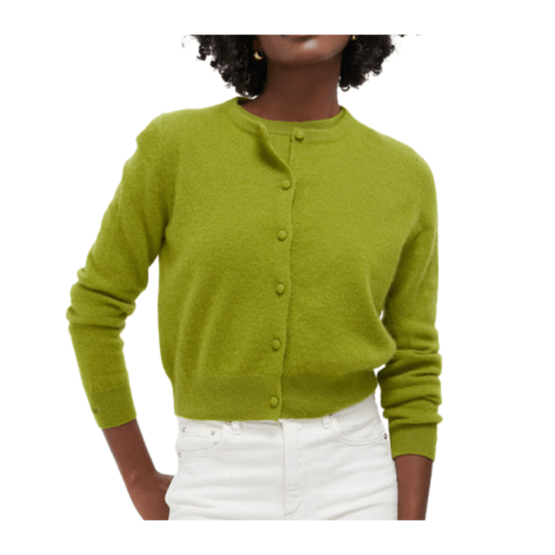 This chartreuse-olive green cardigan is one of my most-worn pieces year-round. It adds the perfect pop of color and is travel-friendly — I even packed it for San Sebastian last summer!Short Sleeve Cardigan