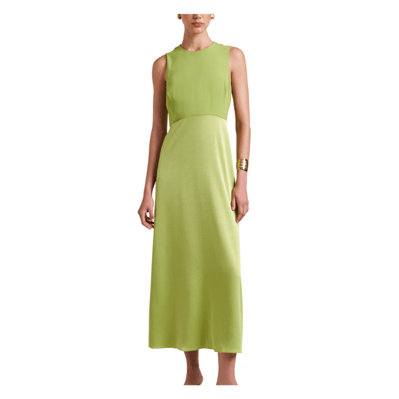 Every fall capsule wardrobe should include a dressier option. This sleek chartreuse style is a trendy take on a classic cocktail dress — perfect for parties or evening events.Fall Floral Dress