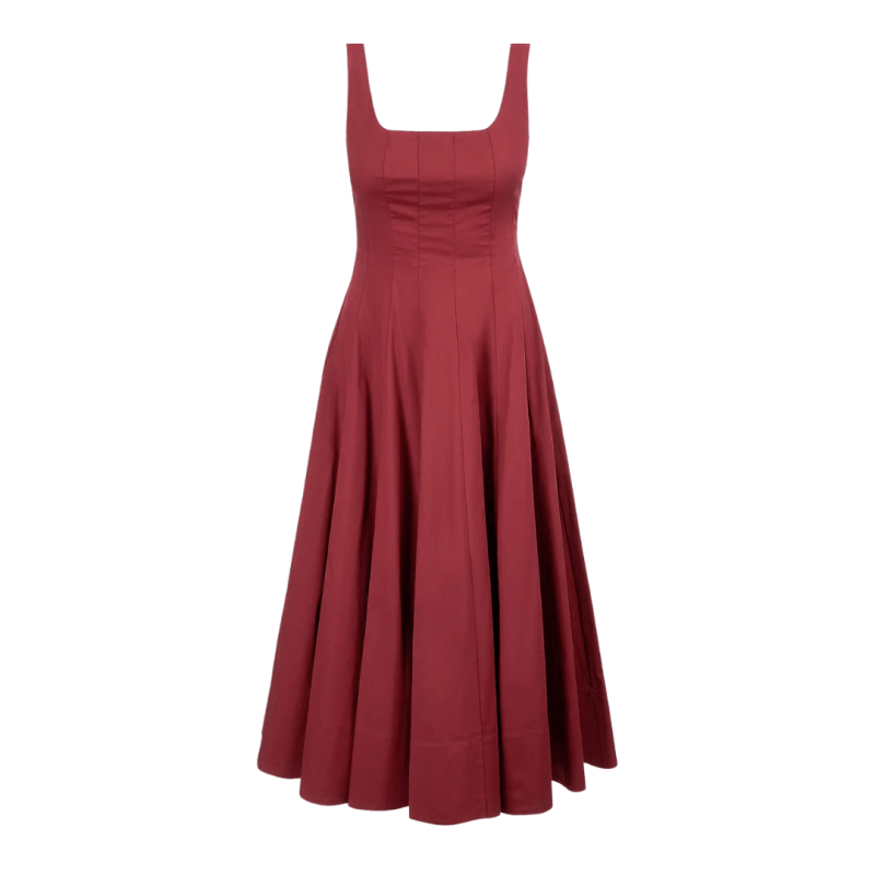 If you’ve followed my other capsule wardrobes, you already know the Staud Wells dress is always included. It’s the perfect all-in-one: flattering, timeless, and versatile. This new burgundy shade is especially gorgeous for fall.