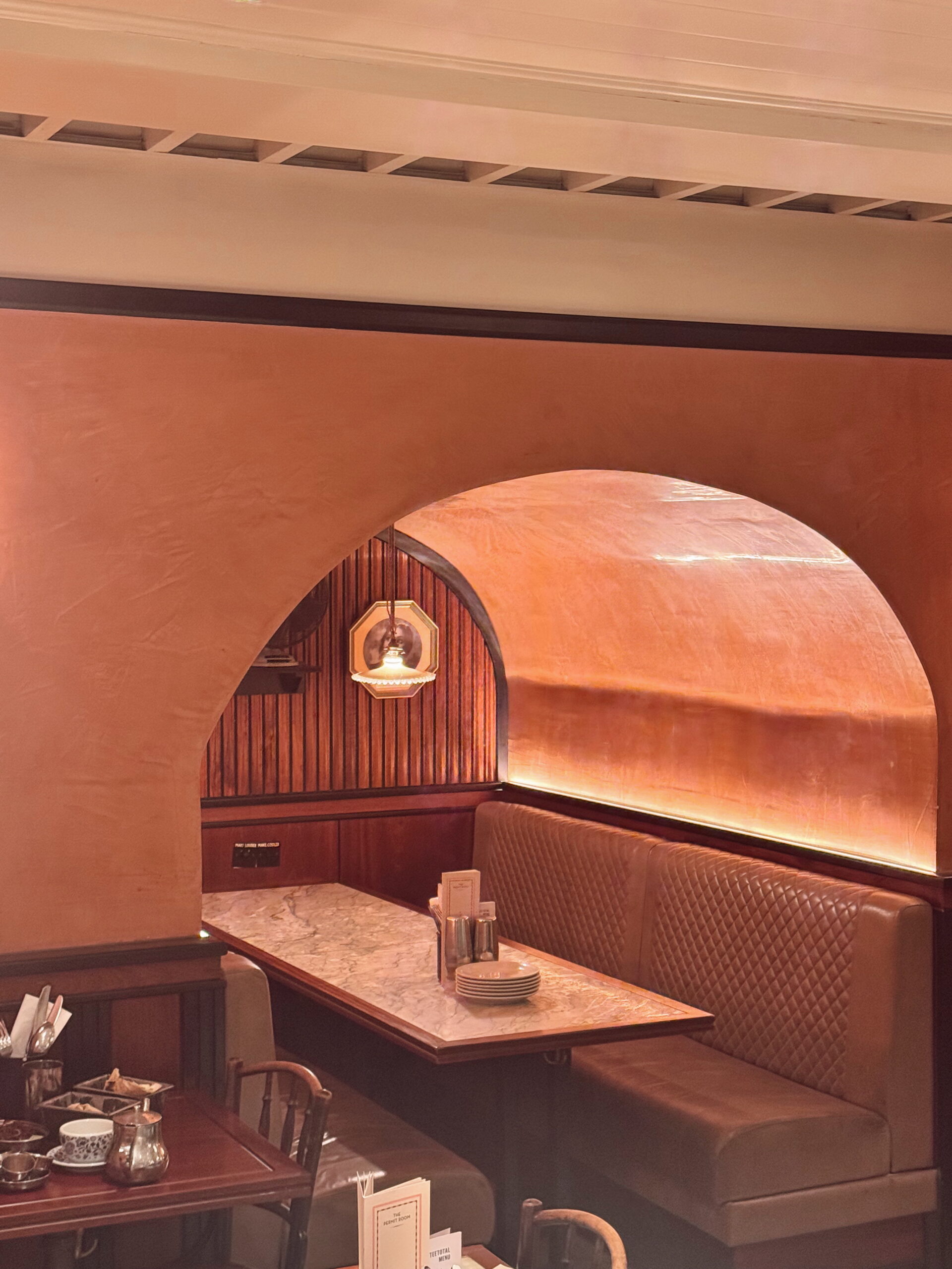I have stayed at two other Rosewood properties -one in Dallas, and one in the BVI’s at Little Dix Bay.  Their properties all have something similar, but so far, each one is uniquely their own. They take on the personality of the city or location, but you have comforting similarities, like their bedding, carpeting, and same level of service. I loved this property! It felt like a haven from the city, which is perfect for when you just need a little calm after a big city day. They also have a couple different restaurants on site – Holborn dining (where we had breakfast every day), The mirror room (where JB and I had dinner the last night, as the boys had room service and a movie – while we kept facetime going to keep an eye), and Scarfes bar, which is one of the most fun night cap spot I’ve been to in ages. Â