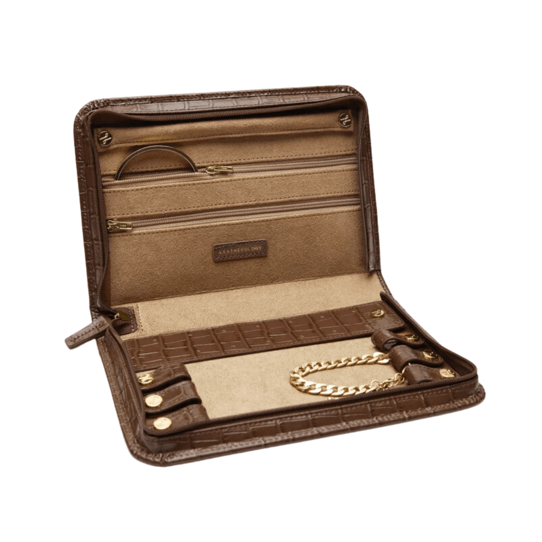 Luxury Option: This large jewelry case from Leatherology is beautiful and also functional. I’m partial to the croc leather, as it will always be in style. Â