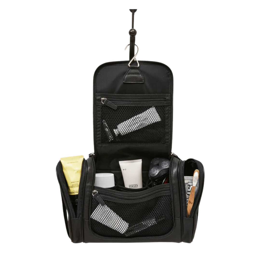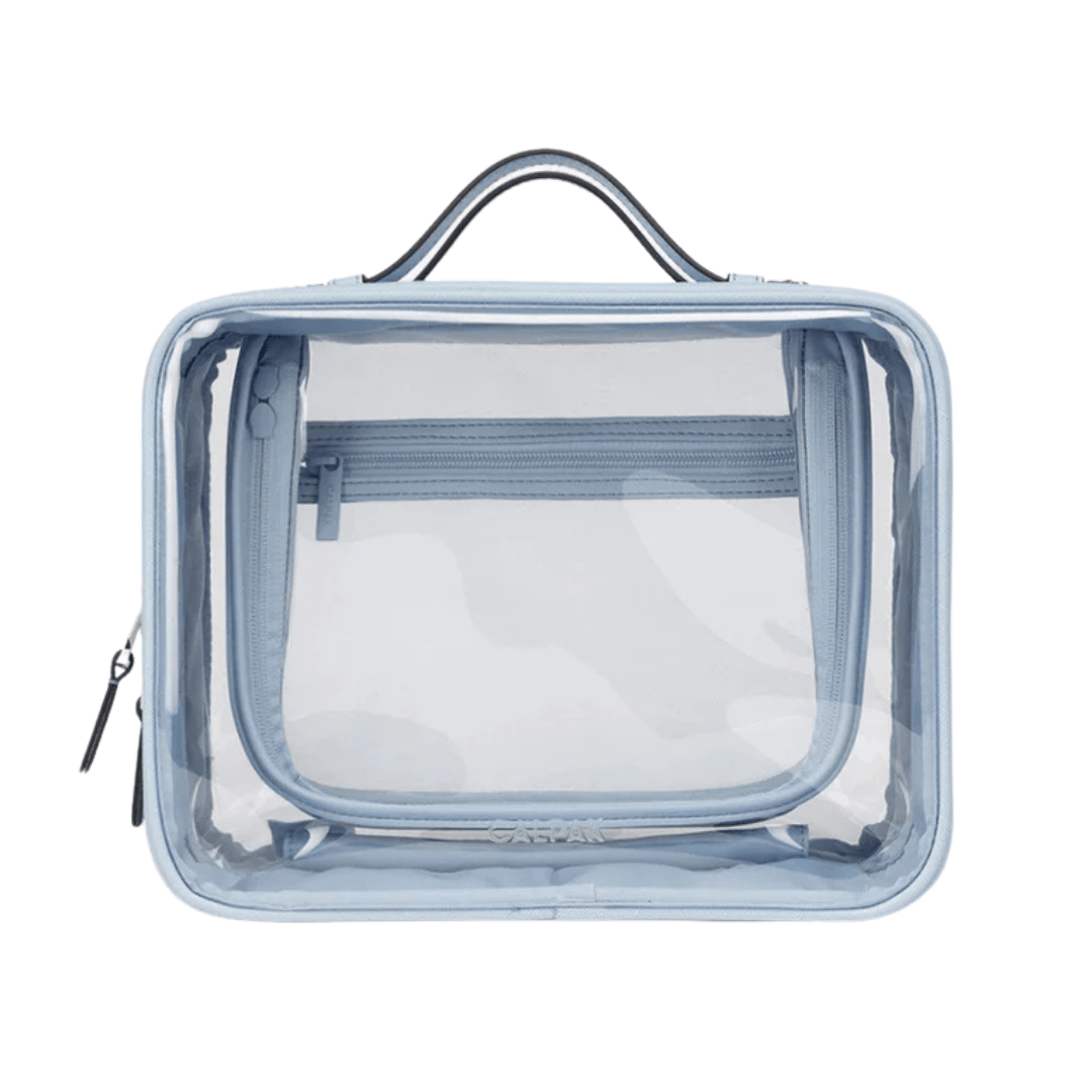 Luxury Option: I gave JB this leather hanging toiletry kit, and the quality is wonderful. For myself, my most-used toiletry bag is a Calpak cosmetics case. I love that it’s clear, so I don’t have to go digging around to find what I need. Plus, some sizes are TSA-approved!