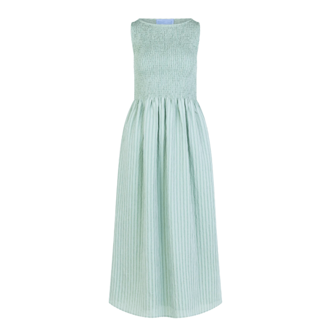 There appears to be a color story happening in this roundup, and I’m here for it. June’s favorites are filled with shades of blue, yellow, mint green, and of course, crisp whites. And let’s not overlook the cute shoes and accessories! Here are some of the standout pieces of the season.