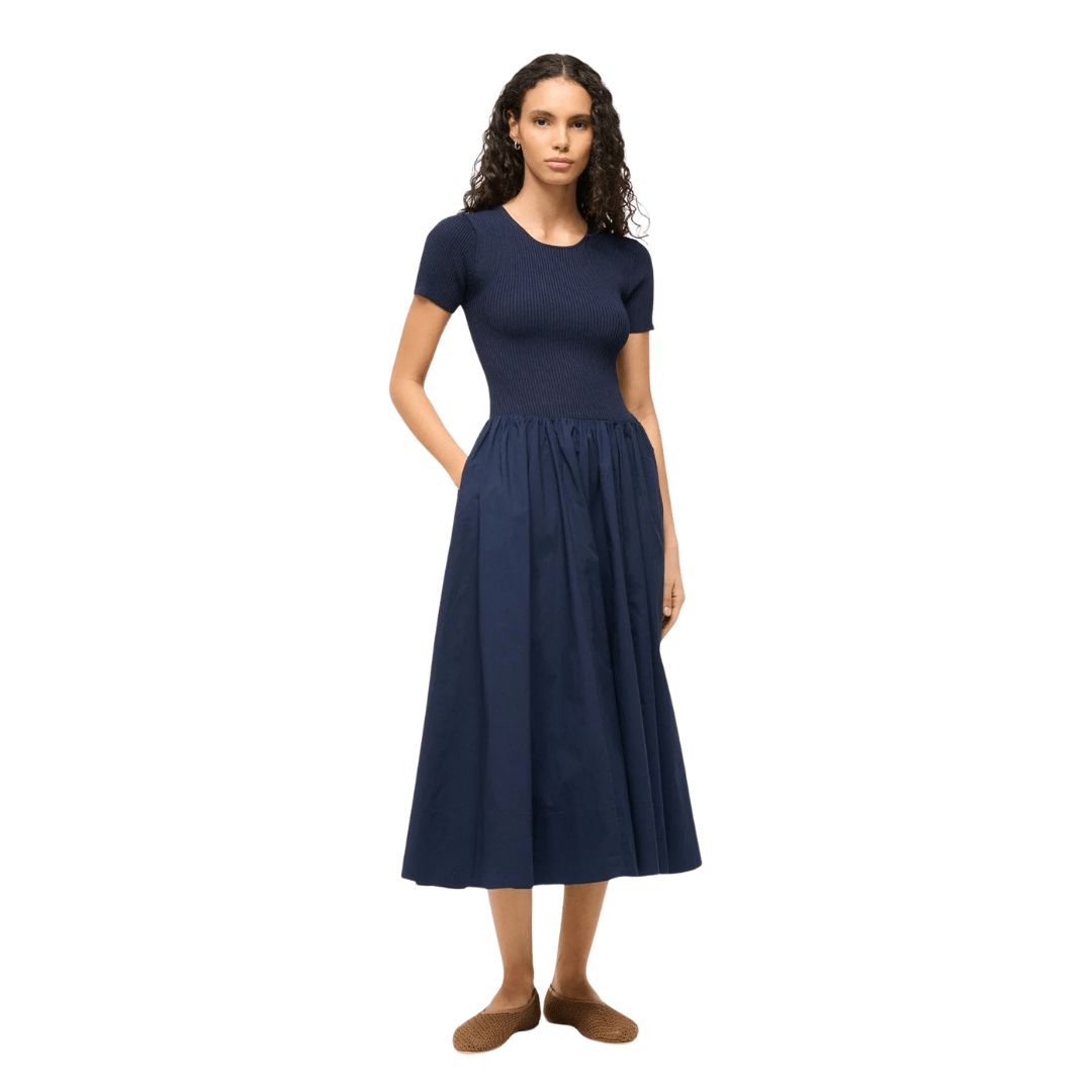 I adore this classic navy midi dress, and it’s currently on sale (you can save $118!). It can easily be worn in the fall as well.