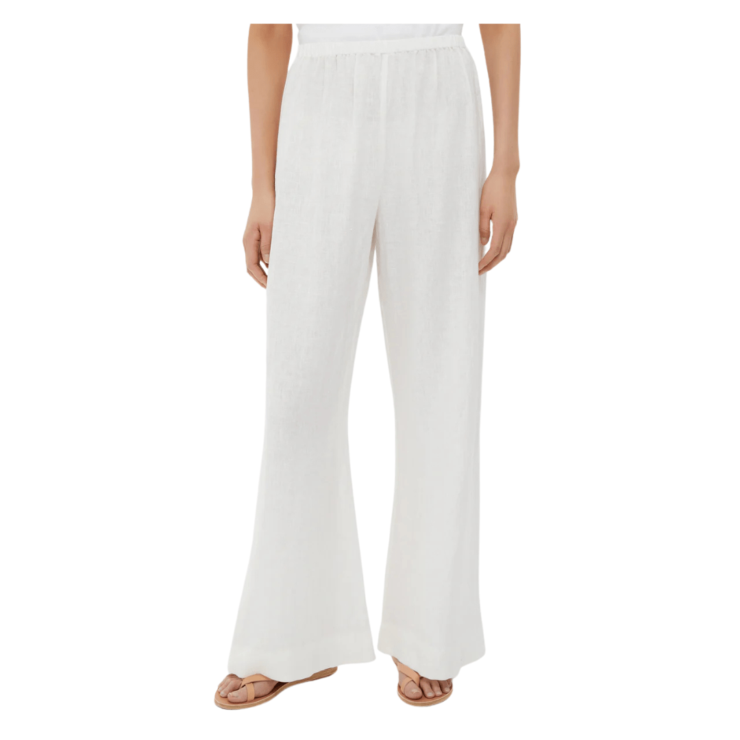 Few fabrics can compare to linen in the heat. These white linen pants have a comfy elastic waistband and a relaxed fit—perfect for summertime!