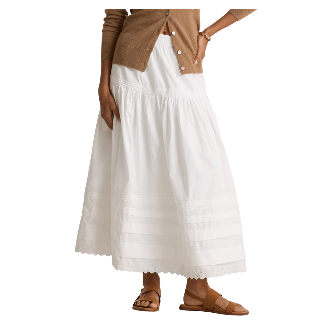 This beautiful organic cotton maxi skirt is under $60 and back-in-stock. The details are gorgeous, and there are countless ways to style it.