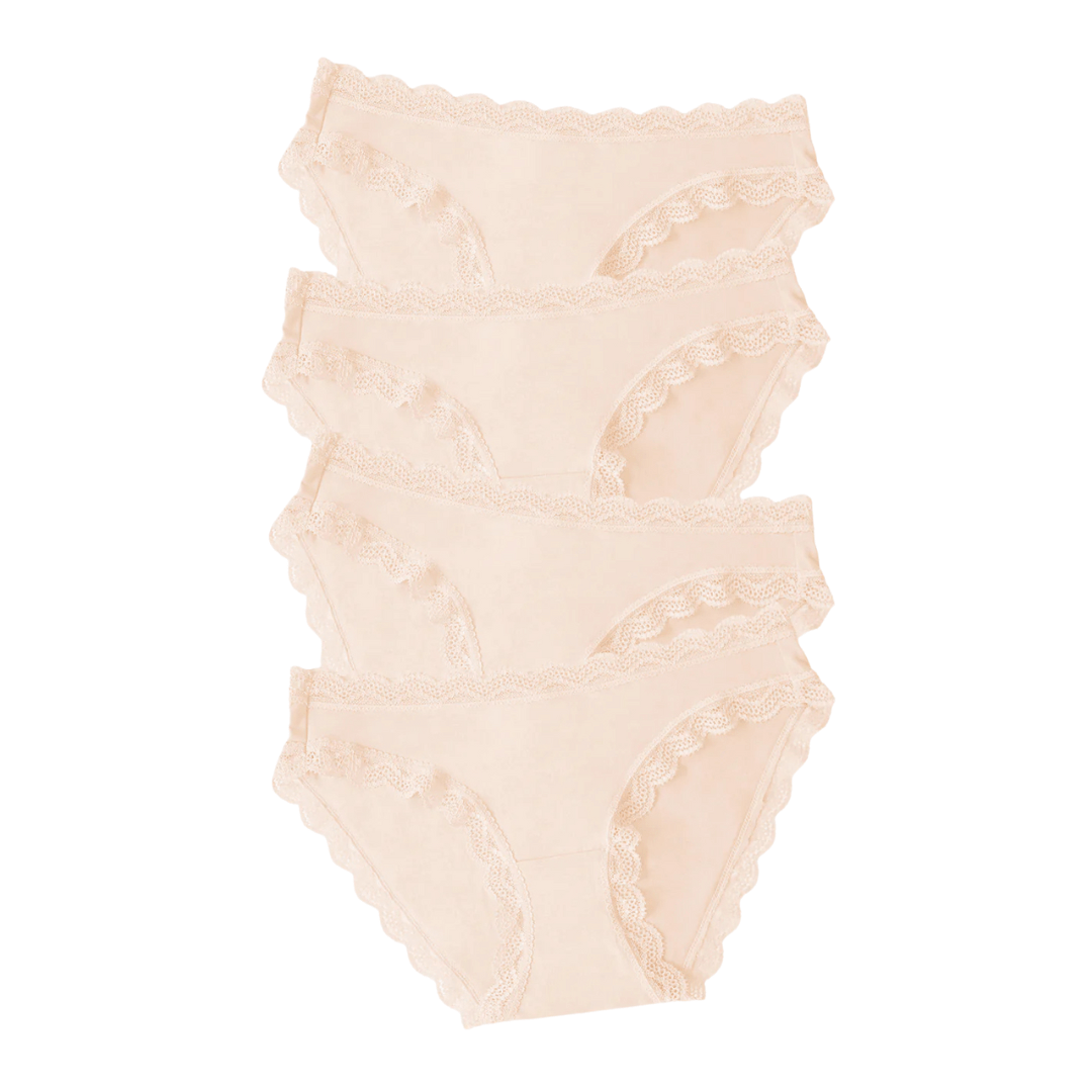 This 4-pack of lace-trimmed undies were a hit last month. Even with the lace, they are a no-show design and they don’t ride up. Soft and comfy!