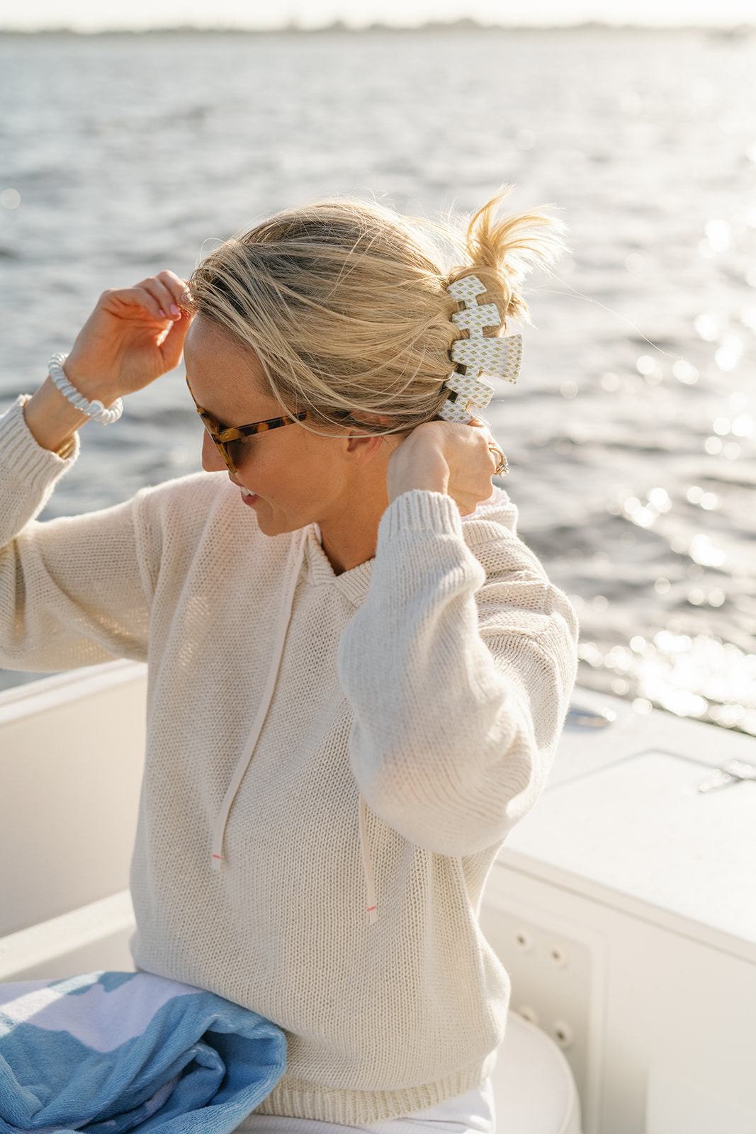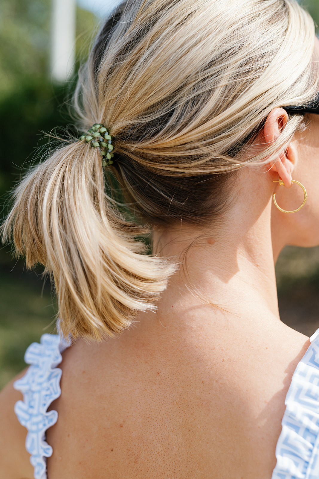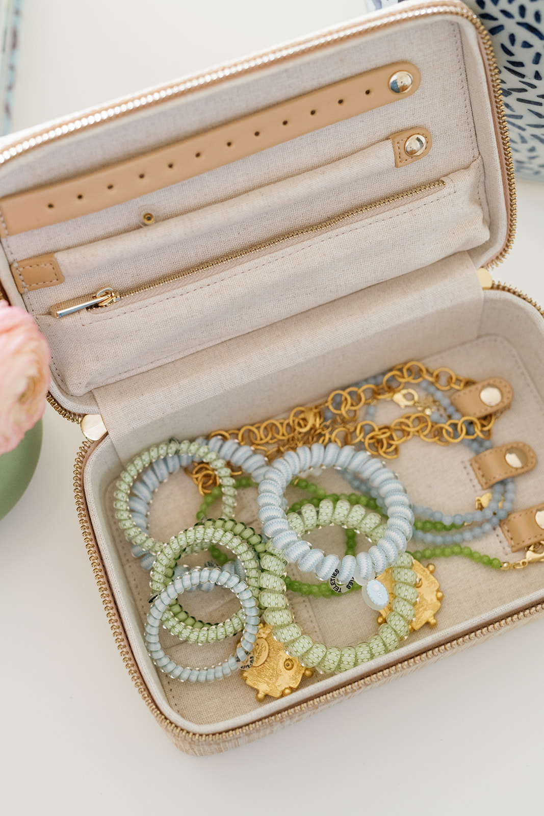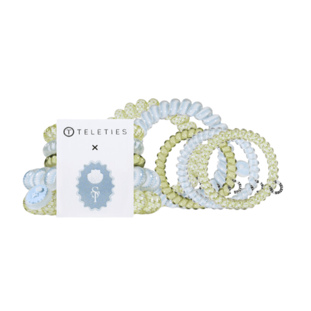I’m thrilled with how this collection came to life! Inspired by the beautiful Florida views and my favorite color combination, Teleties did an excellent job crafting these pieces, down to every little detail. If you’re traveling this spring or summer, all of these accessories are definitely worthy of packing! Here is a bit about each piece in the collection.
