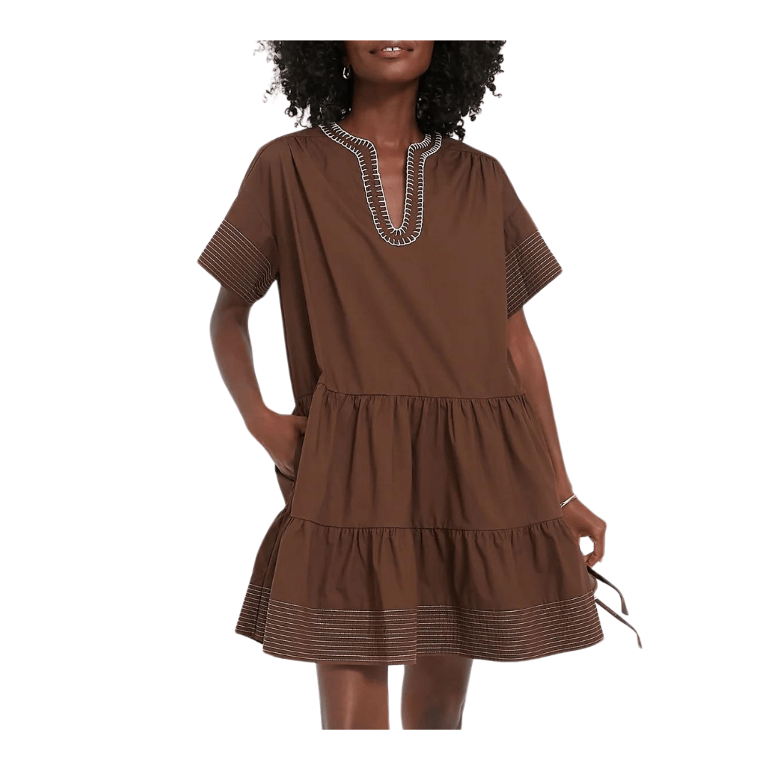 Both styles of hair clips look great with a casual dress. I love how the blue and green claw clip pairs with this brown tiered mini dress. I own this blue seashell necklace and this simple green beaded necklace, and I get so much wear out of both. And the raffia sandals and woven shoulder bag would match everything this spring and summer!